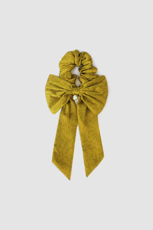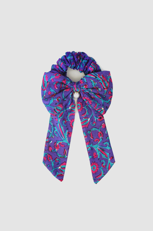 NAYAB PATTERN BOW SCRUNCHIE IN SILK CHARMEUSE