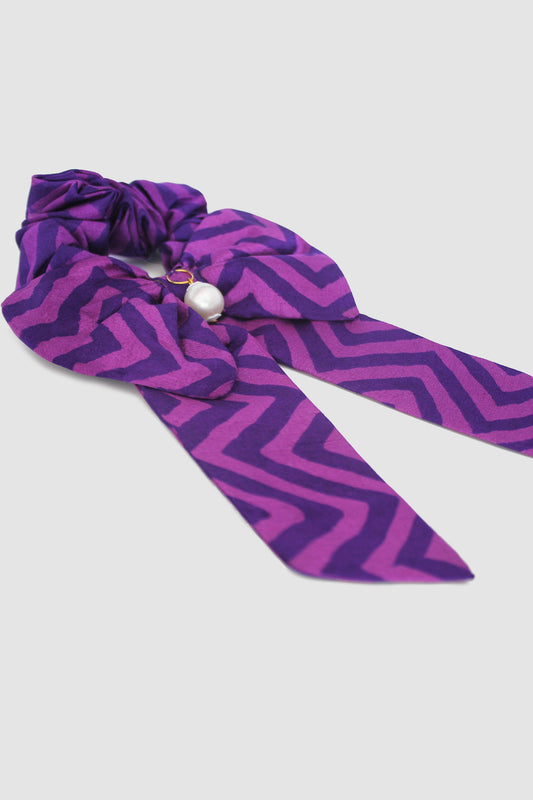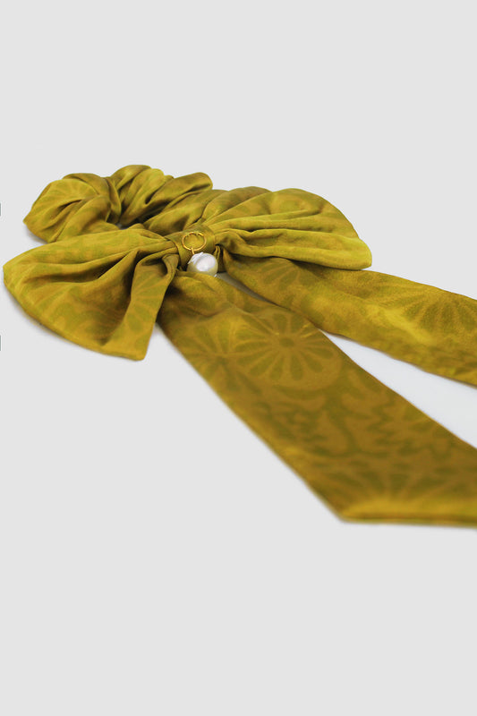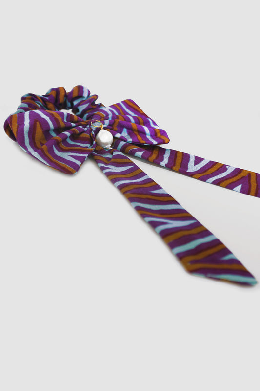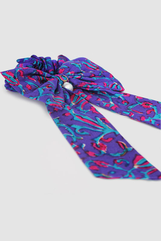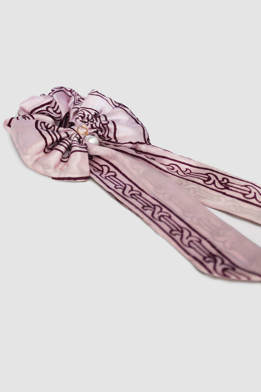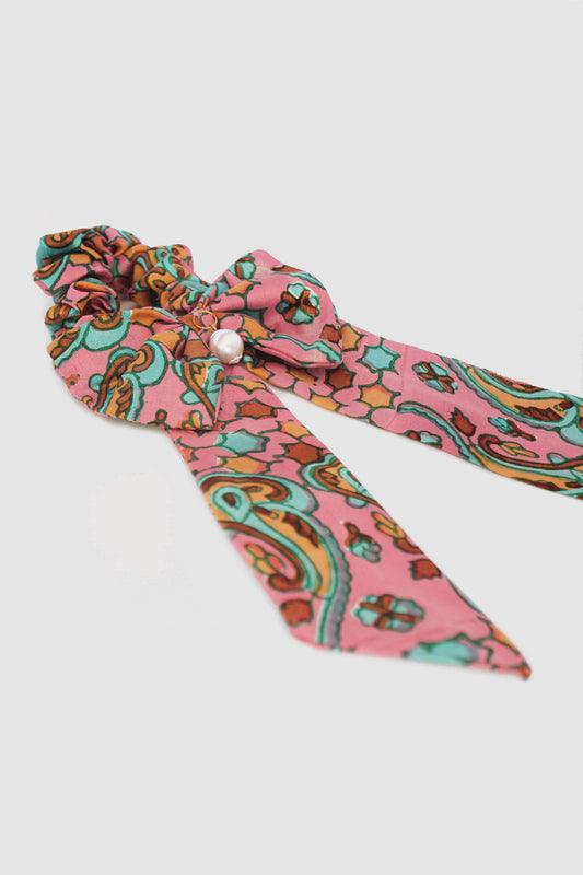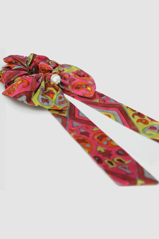 NAYAB PATTERN BOW SCRUNCHIE IN SILK CHARMEUSE