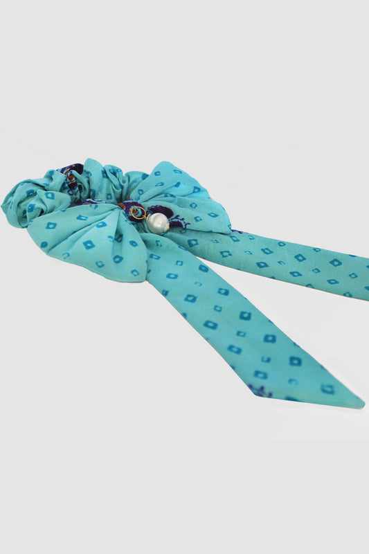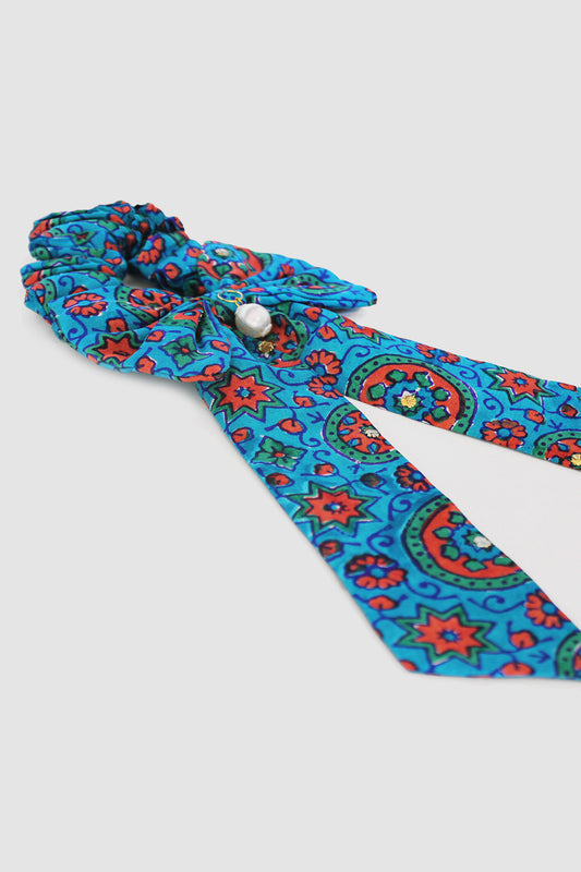ZEENAT AJRAK BOW SCRUNCHIE IN RAW SILK