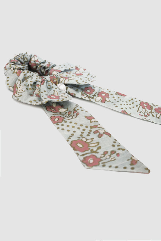 SABIHA FLORAL BOW SCRUNCHIE IN RAW SILK