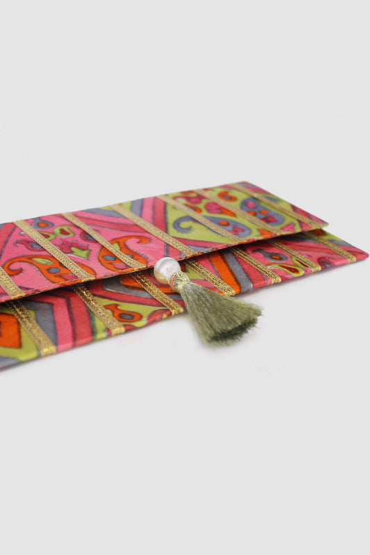 QAISAR PAISLEY COIN PURSE IN RAW SILK