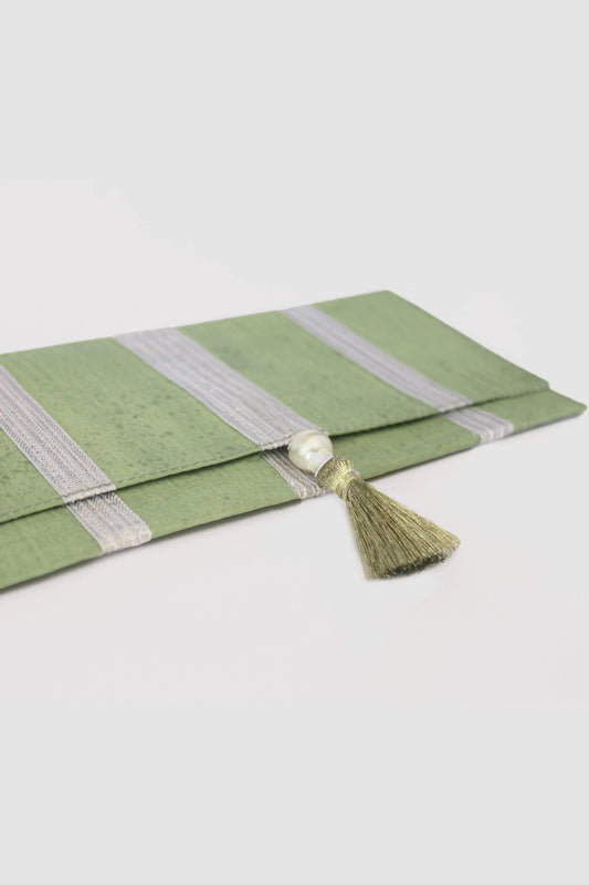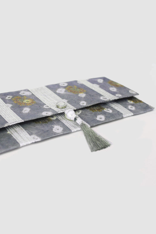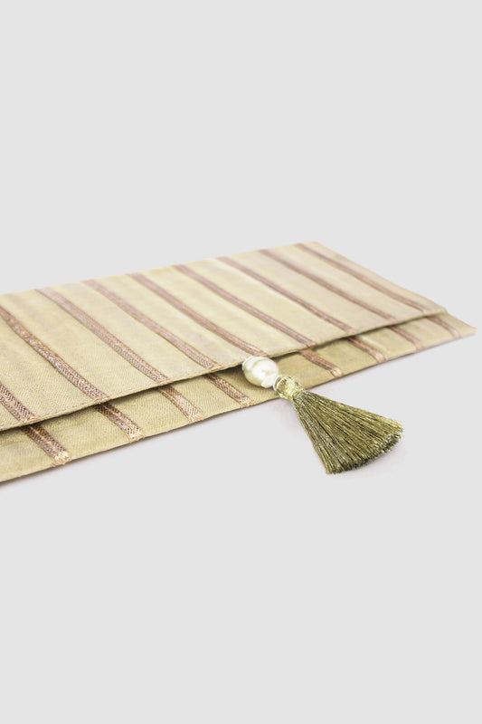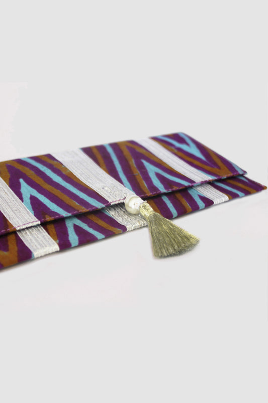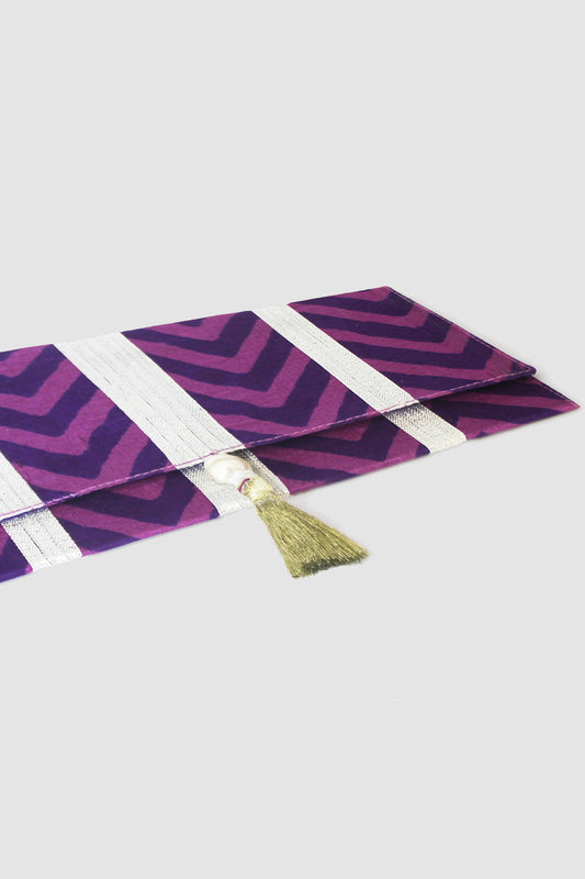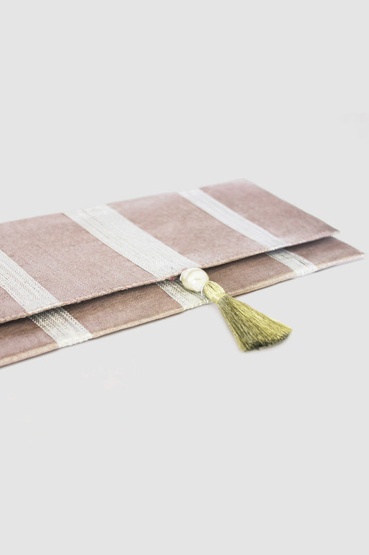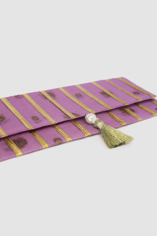 JAMSHEDA CHEVRON COIN PURSE IN RAW SILK