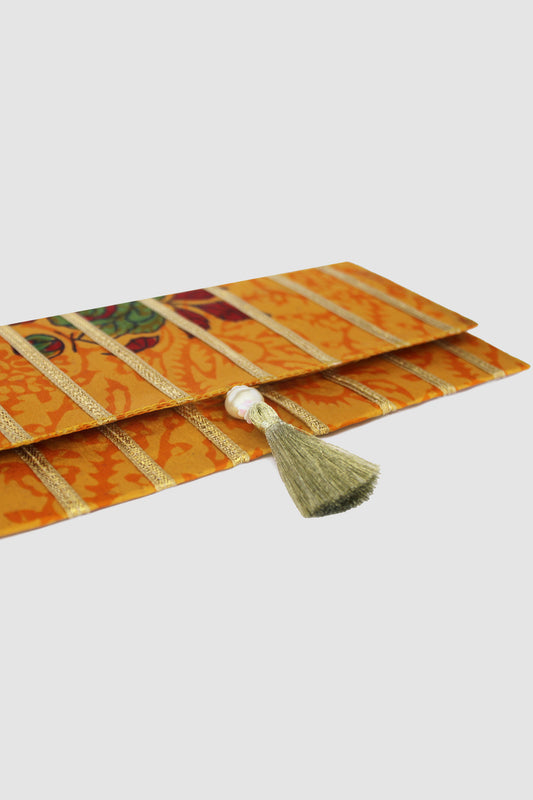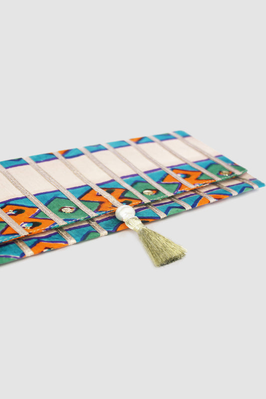 JAMSHEDA DIAMOND BORDER COIN PURSE IN RAW SILK
