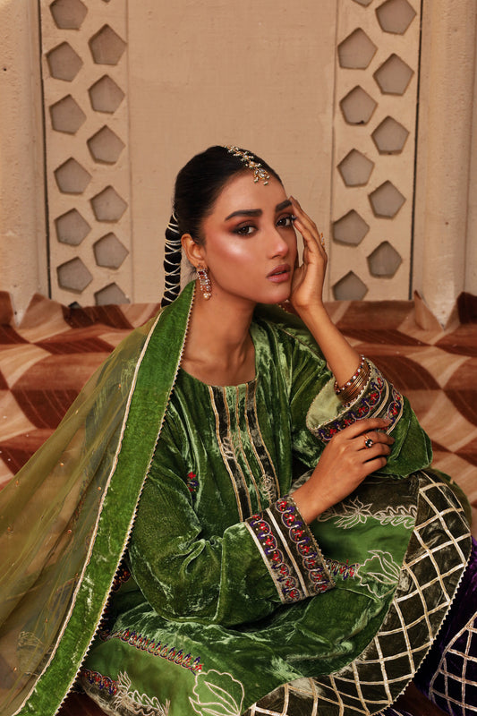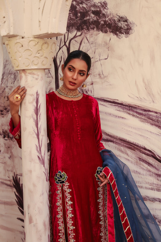 NAZNEEN SHIRT, SHALWAR IN SILK VELVET AND DUPATTA IN NET
