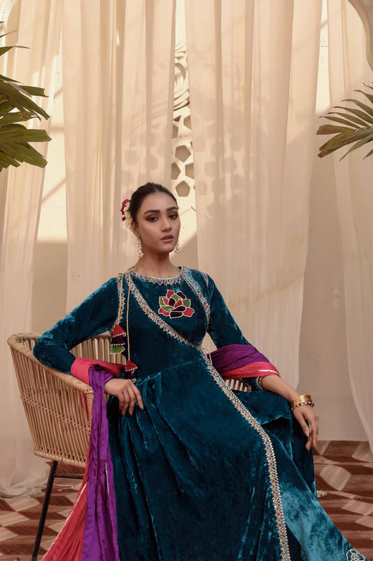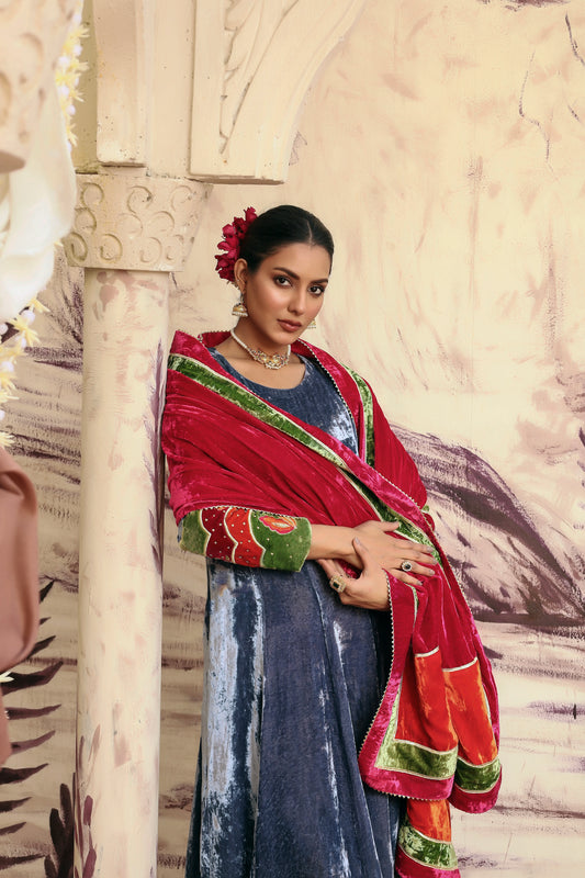 NOUSHEEN PISHWAS AND SHAWL DUPATTA IN SILK VELVET