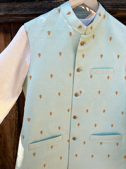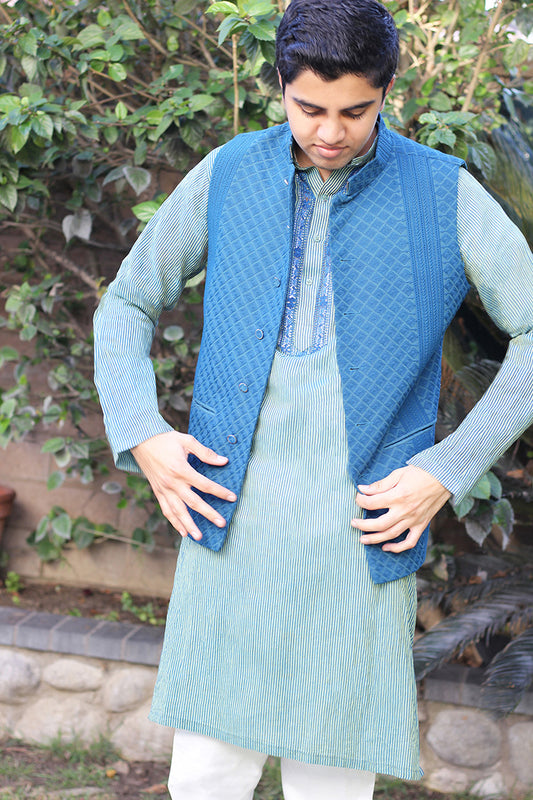 ASLAM KURTA, PAJAMA IN KARANDI AND WAISTCOAT AND SILK
