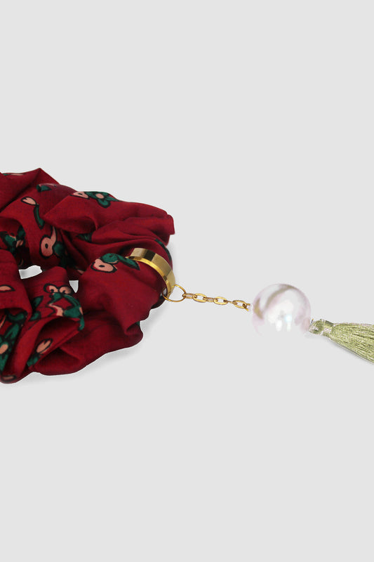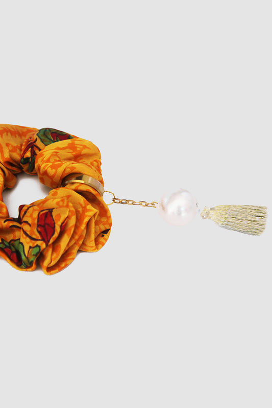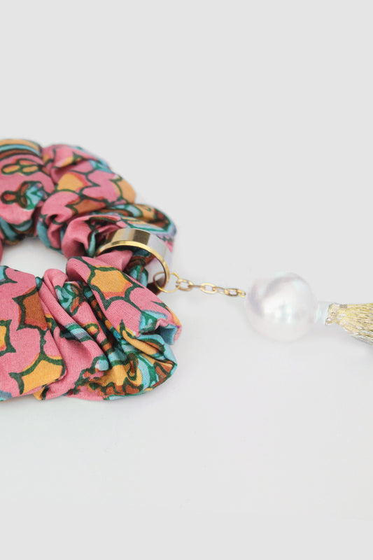 NASEEM FLORAL SCRUNCHIE IN RAW SILK