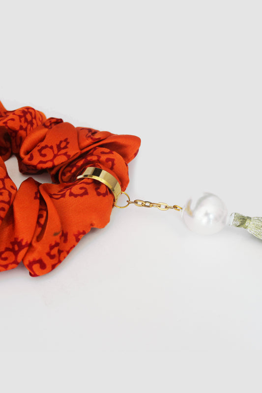 RANI AJRAK SCRUNCHIE IN SILK CHARMEUSE
